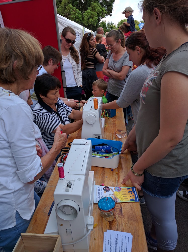 Obwohl wir gleich am ersten Termin sowohl mit Teilnehmern ohne Deutsch- und Englischkenntnisse als auch mit Teilnehmern ohne Nähmaschinenerfahrung konfrontiert waren, war schnell klar, dass die Verständigung gelingen würde.